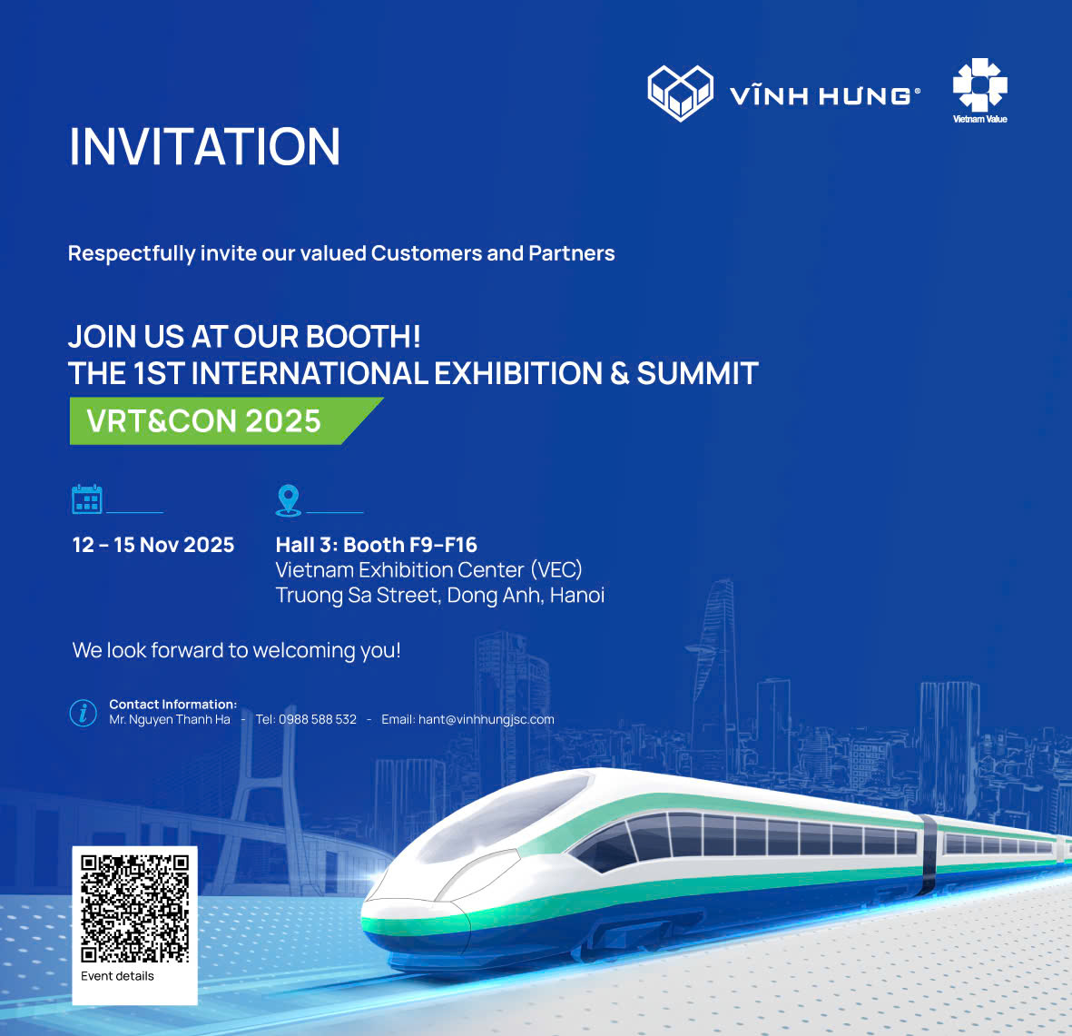 Vinh Hung warmly invites valued partners, clients, and industry experts to visit our booth at VRT&CON’2025, to explore our products, share insights, and connect for future cooperation opportunities.