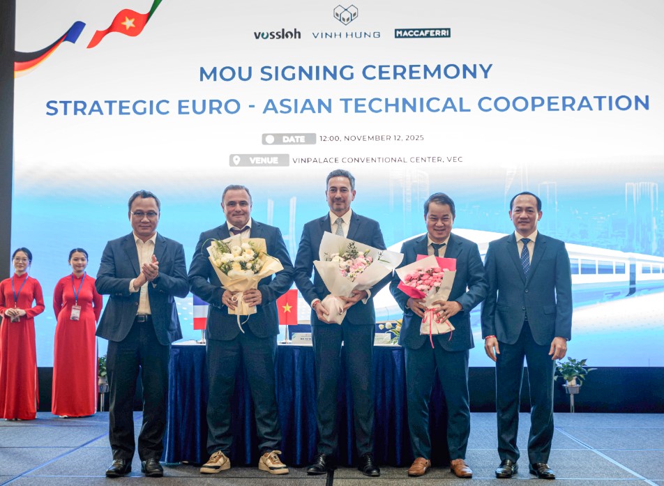 Đón đầu cơ hội, Vĩnh Hưng đã thiết lập quan hệ đối tác chiến lược với những “gã khổng lồ” toàn cầu như tập đoàn Vossloh (Đức) và Maccaferri (Ý). Sự hợp tác chiến lược giữa Vĩnh Hưng – Vossloh – Maccaferri đánh dấu bước tiến quan trọng trong nội địa hóa công nghệ và sản xuất thiết bị ngành đường sắt. Ba bên sẽ phối hợp nghiên cứu, chuyển giao và sản xuất hệ thống phụ kiện đường sắt, hệ thống ghi chuyển hướng, giải pháp gia cố bảo vệ mái dốc và các địa hình hiểm trở đạt chuẩn quốc tế ngay tại Nhà máy Việt Nam. Những sản phẩm này không chỉ phục vụ nhu cầu trong nước mà còn hướng đến xuất khẩu, cung cấp cho các dự án giao thông quốc tế.