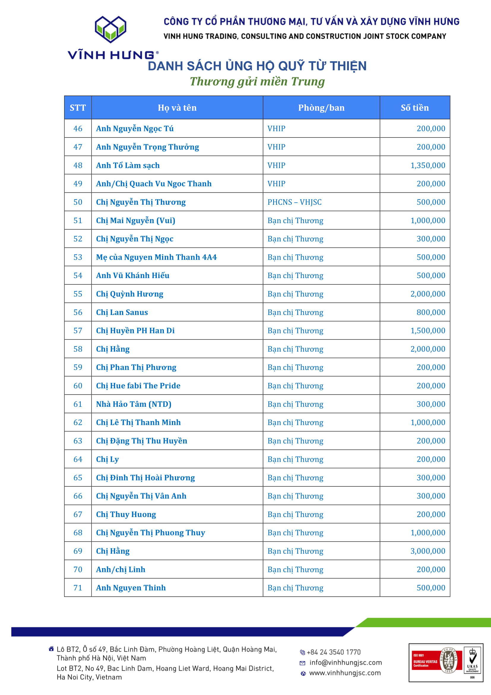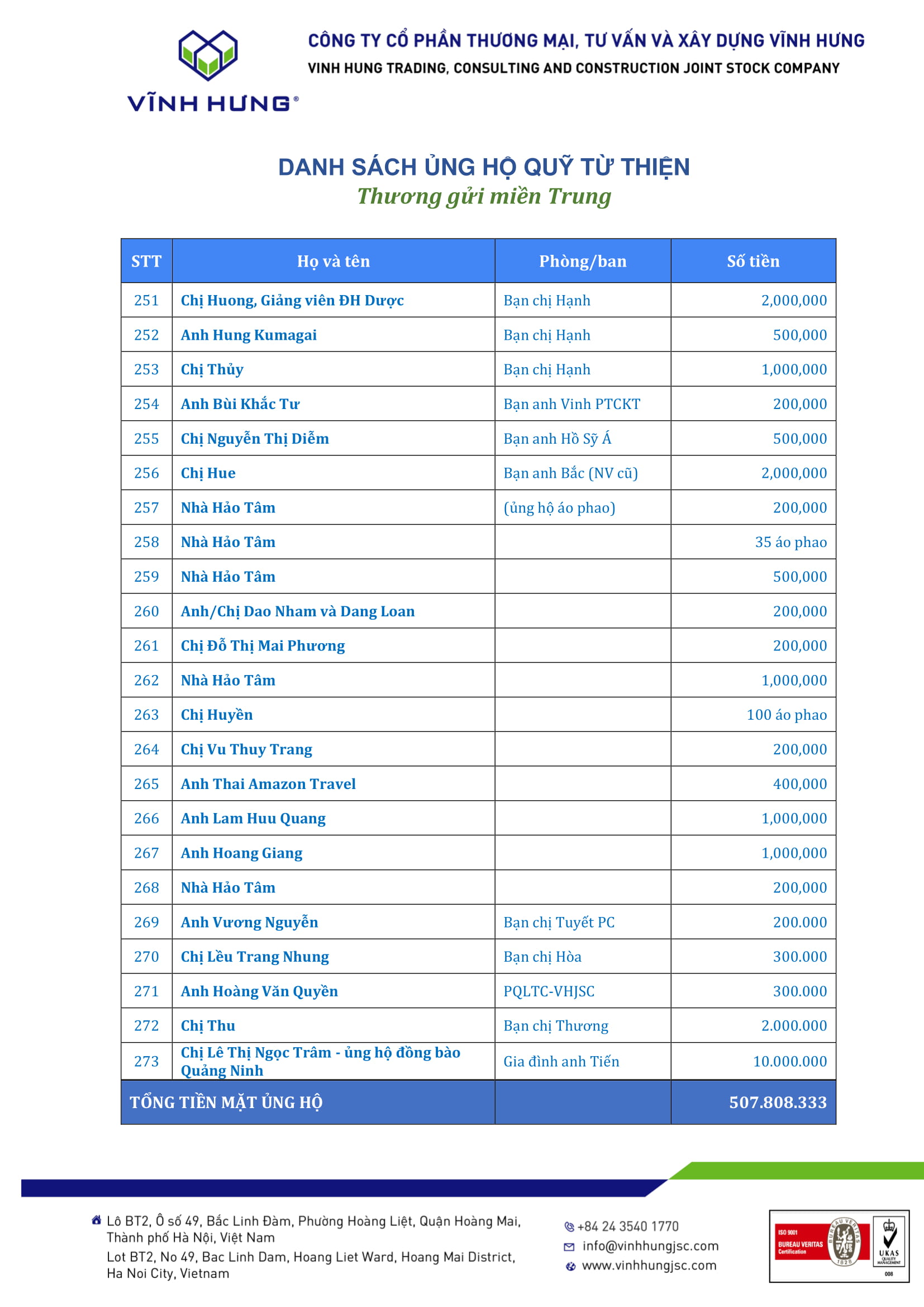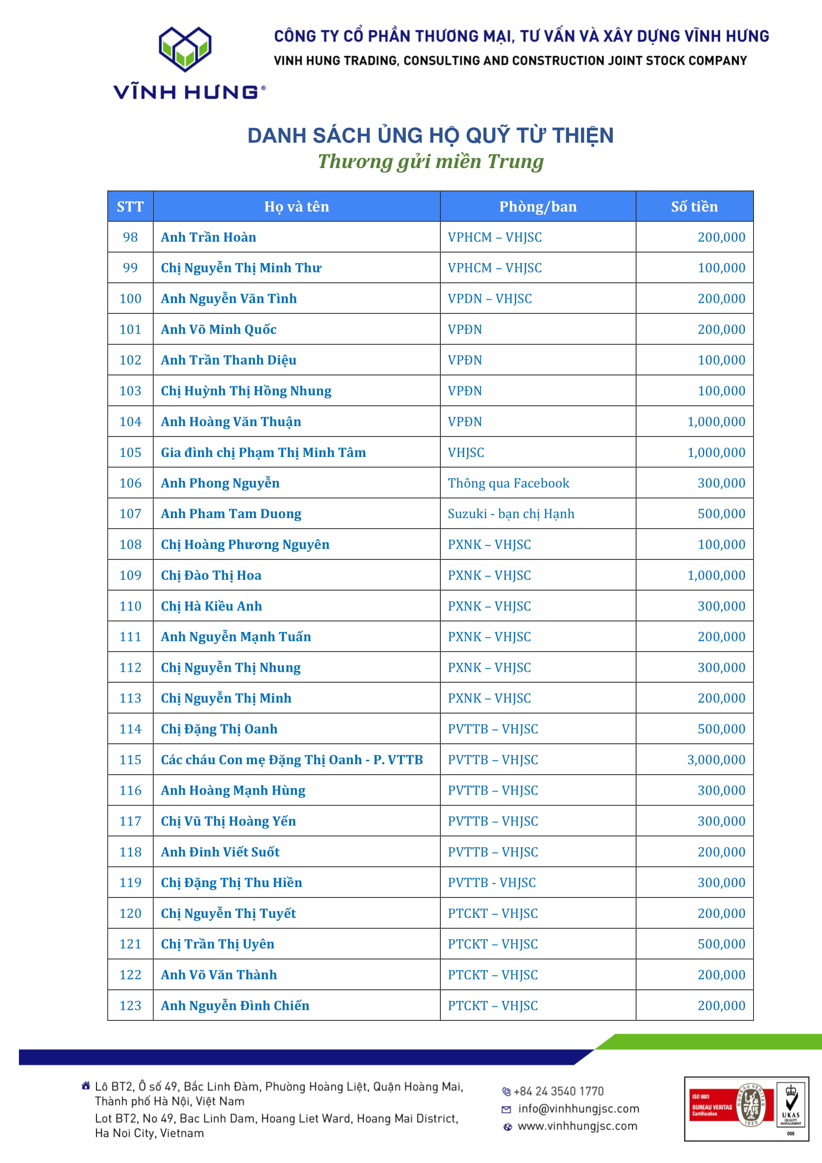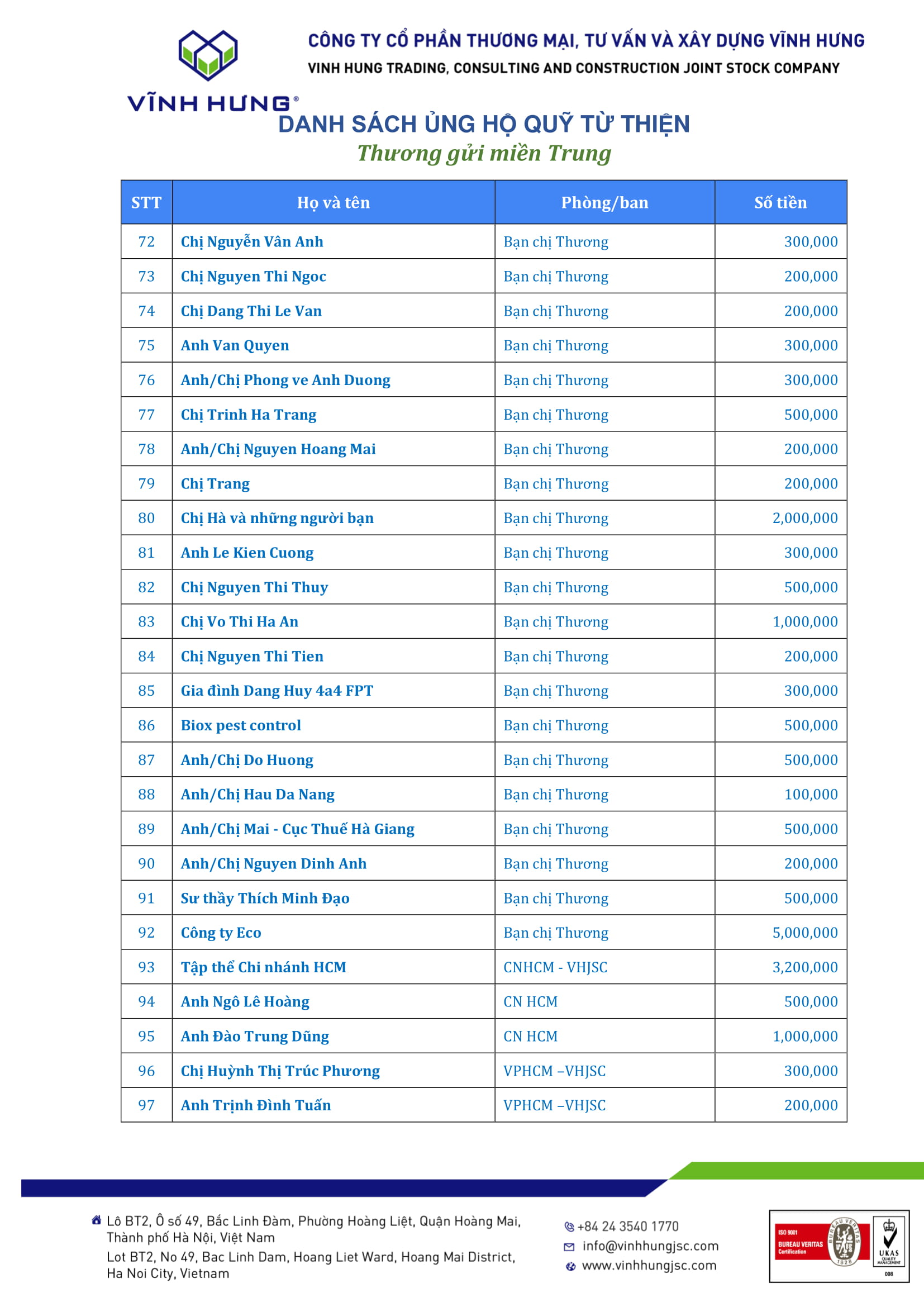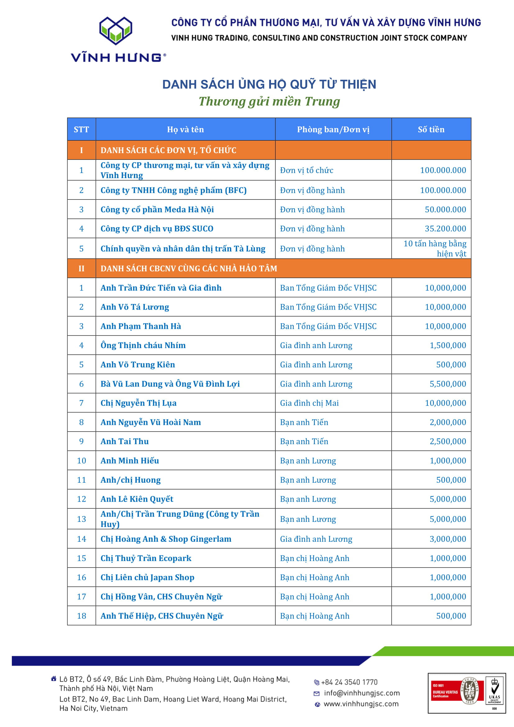 Danh sách Nhà Hảo Tâm ủng hộ chương trình "Thương gửi miền Trung" 26/10/2020 18:58:15 Vĩnh Hưng 360o Chia sẻ Danh sách Nhà Hảo Tâm ủng hộ chương trình "Thương gửi miền Trung" Chia sẻ