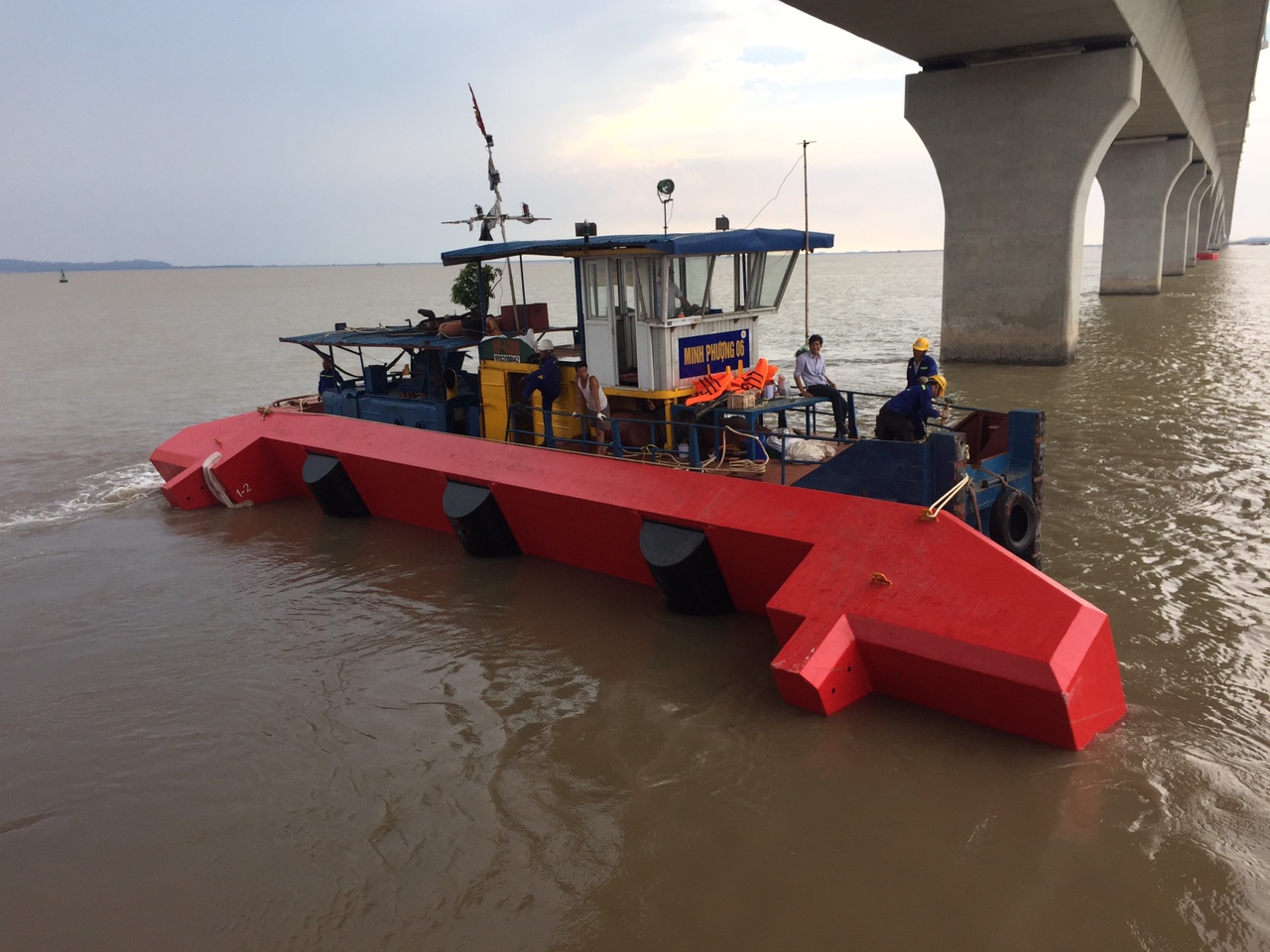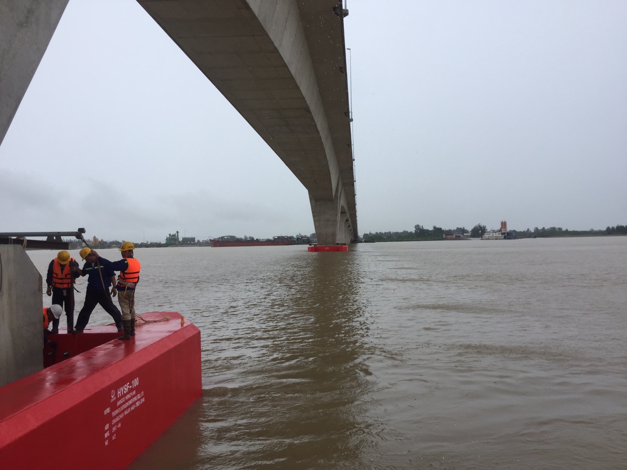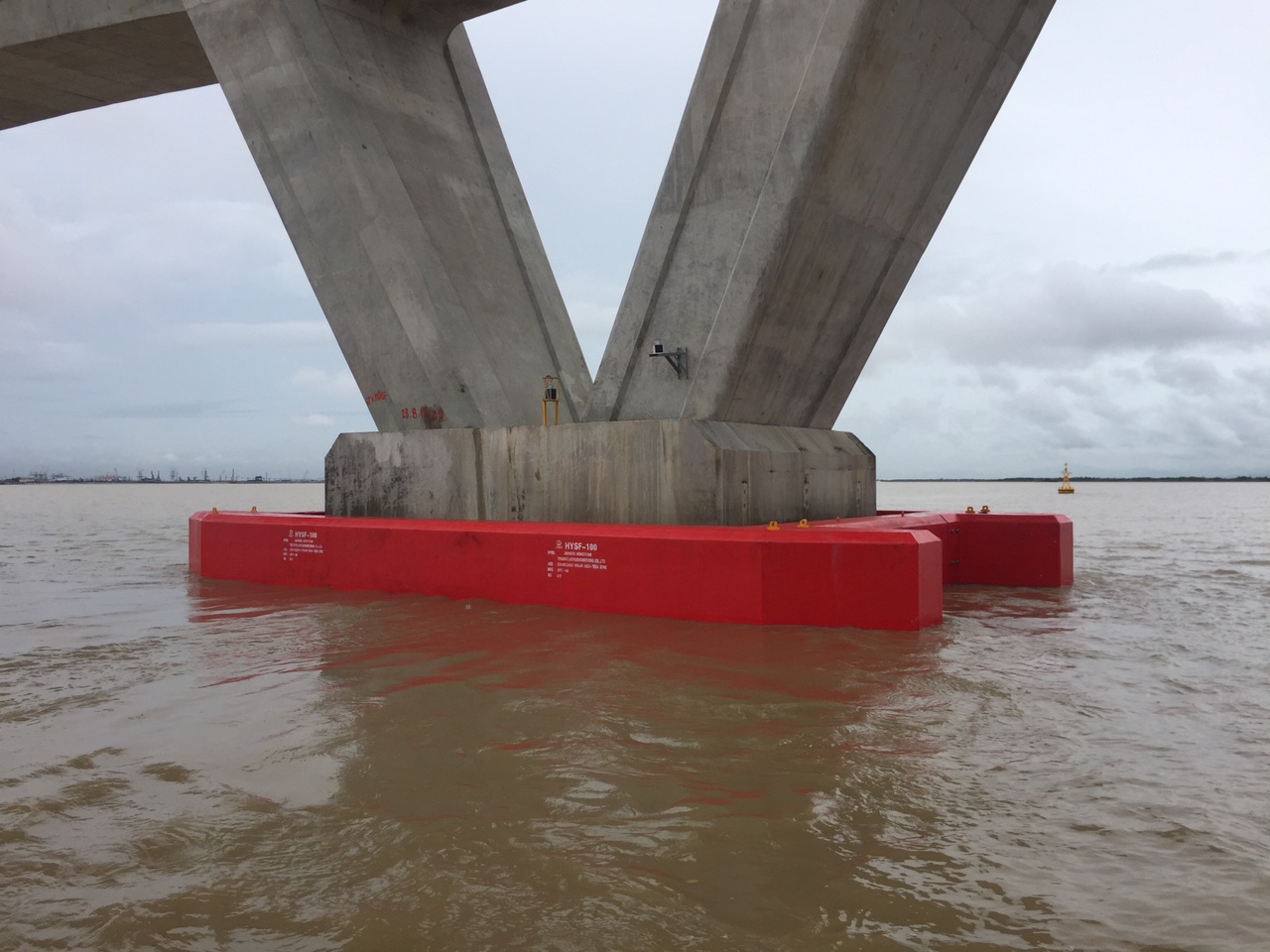 Cầu Tân Vũ – Lạch Huyện là cây cầu vượt biển có chiều dài lớn nhất Việt Nam và là cây cầu vượt biển lớn nhất trong khu vực Đông Nam Á. Vĩnh Hưng JSC đã thi công lắp đặt Thiết bị chống va xô do Công ty Jiangsu Hongyuan Techlonogy & Engineering sản xuất, lần đầu tiên áp dụng tại Việt Nam cho phần cầu chính tại dự án này. Thiết bị chống va xô áp dụng tại dự án là dạng kết cấu tự nổi hoạt động dựa trên nguyên lý tiêu tán năng lượng va xô của tàu và trụ cầu. Kết cấu thiết bị là kết cấu hỗn hợp các vách gia cường bằng tấm sợi thủy tinh bao gồm các loại vật liệu chính: Thép, inox, tấm sợi thủy tinh, vật liệu hấp thụ năng lượng HYPU… Thiết bị có cường độ tốt, có thể chịu nhiều lần va chạm của tàu.