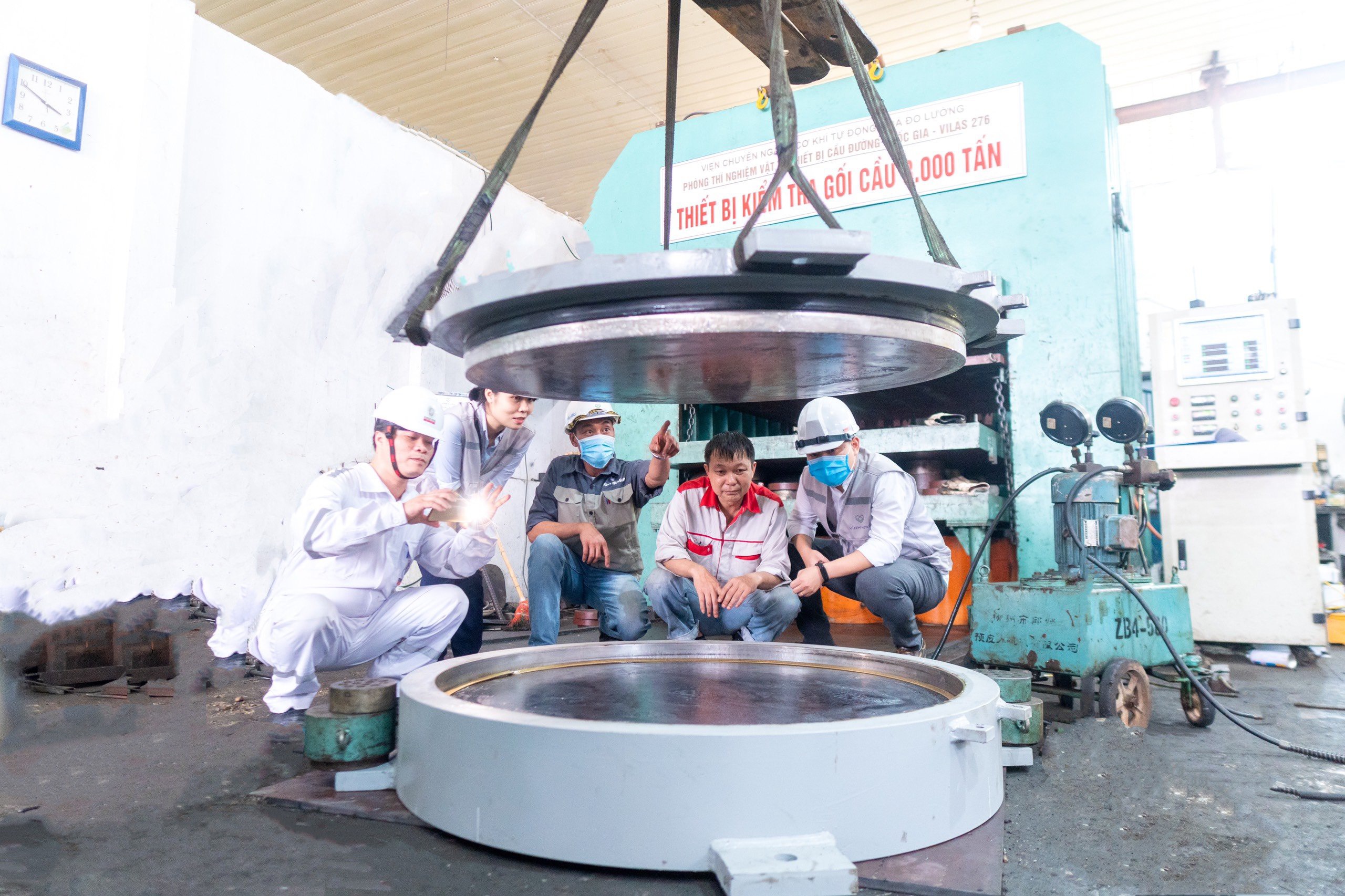 Kiểm tra gối cầu tại Phòng thí nghiệm vật tư thiết bị cầu đường quốc gia Villas 276:
