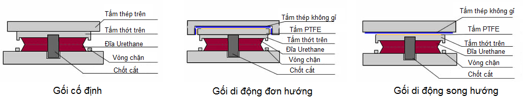 Trong đó gối di động bao gồm gối đi động đơn hướng và gối di động đa hướng.