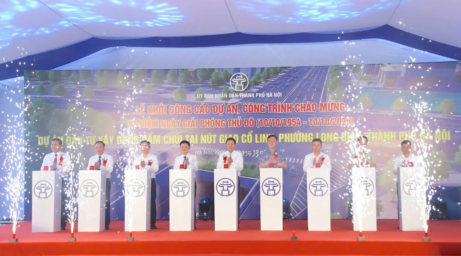 Các đại biểu thực hiện nghi thức khởi công dự án hầm chui nút giao Cổ Linh.