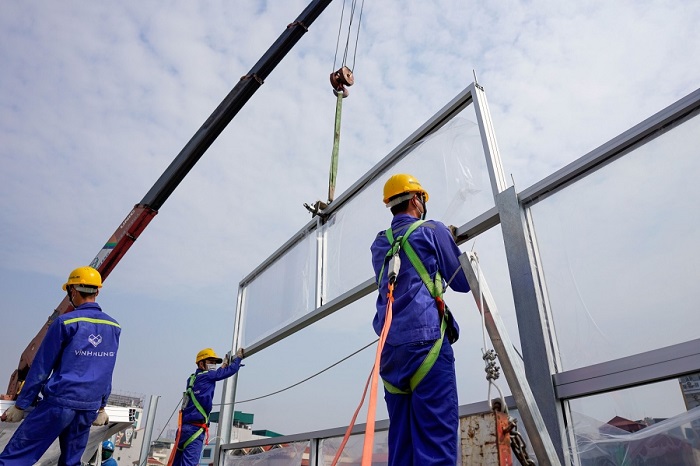 Tấm chống ồn được làm bằng loại nhựa đặc chủng với khung nhôm dày, có độ bền cao và chịu thời tiết. Chiều cao tính từ mặt đường là 3 m. Toàn bộ phần vách chống ồn do Vĩnh Hưng gia công và hoàn thiện trước khi vận chuyển ra công trường để lắp đặt. Do có khung sẵn, nên quá trình lắp đặt mỗi tấm chỉ mất khoảng 10 phút.