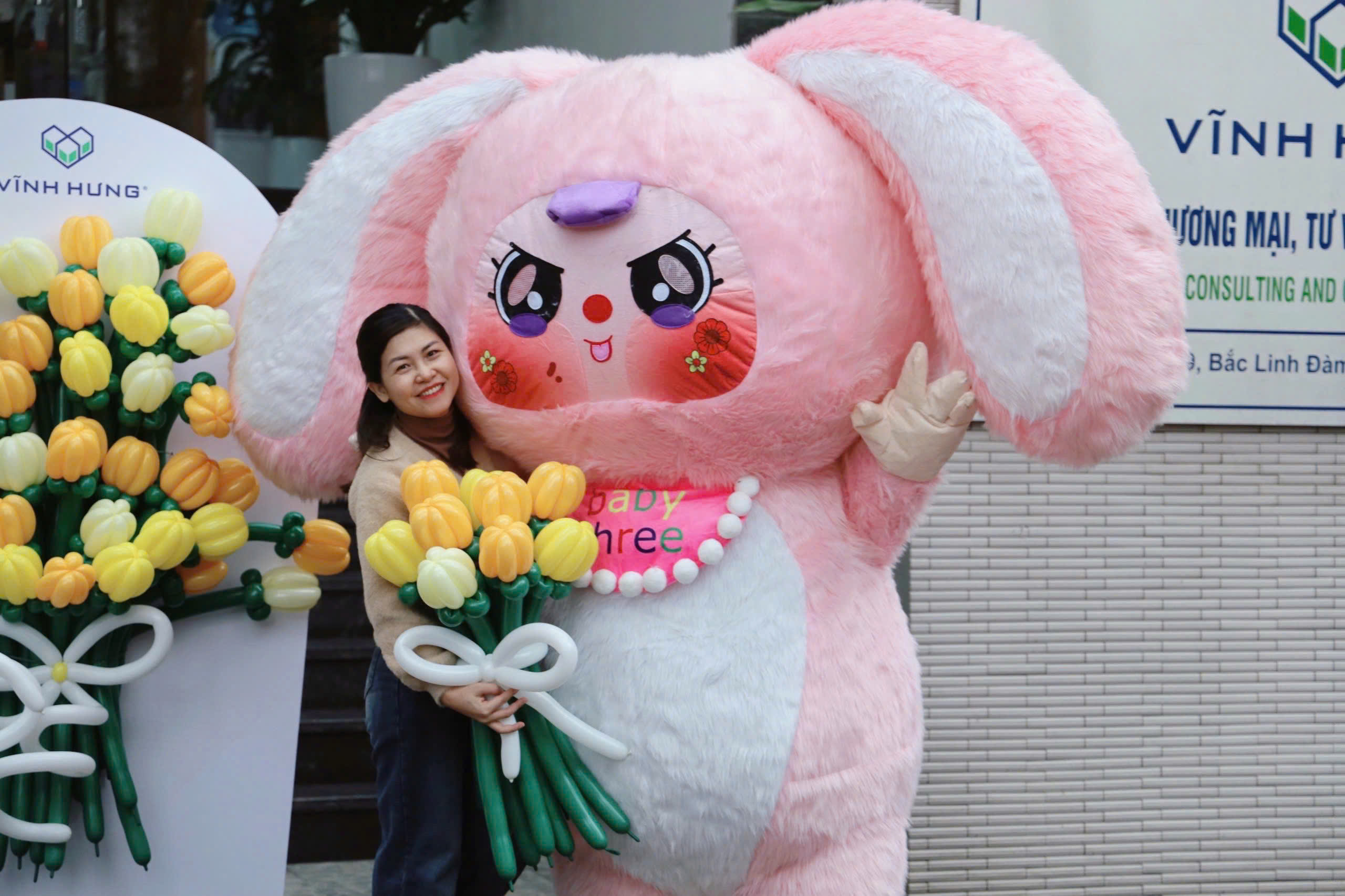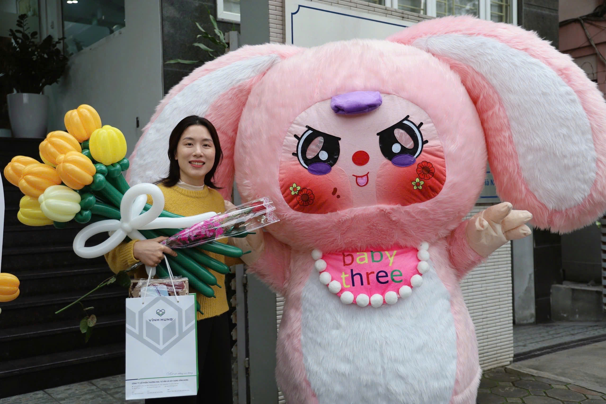 Từ sáng sớm ngày 08.03, các cô gái của chúng ta đã nhận được sự chào đón của một nhân vật đặc biệt – đó chính là “bé” Baby three đáng yêu và thân thiện do một CBNV nam “hóa thân” thành. Những món quà đặc sắc từ hoạt động “Bóc hộp mù – cào coupon trúng thưởng” và minigame “Truy tìm nửa kia” đã cùng tạo ra không khí vui vẻ, gắn kết, ý nghĩa trong ngày tôn vinh Phái đẹp.