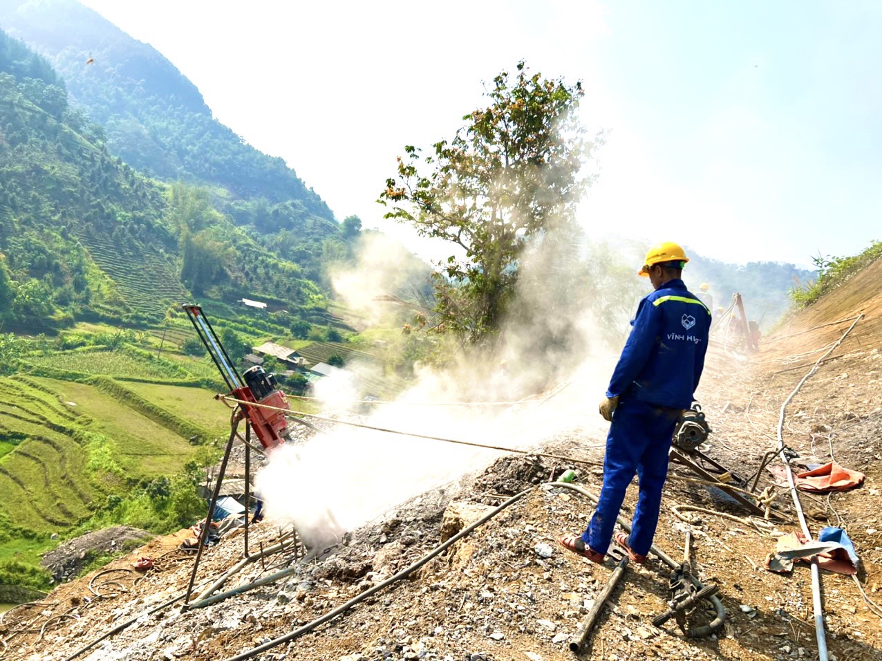Năm 2023, Vĩnh Hưng đã hoàn tất hạng mục xây dựng tường chắn đất có cốt bản mặt rọ đá neo. Theo kế hoạch, tháng 06/2024 sẽ hoàn thành giải pháp gia cố mái taluy dương – chống đá lở, đá rơi bằng hệ lưới thép sức kháng cao kết hợp đinh neo tại Tuyến nối Lai Châu.