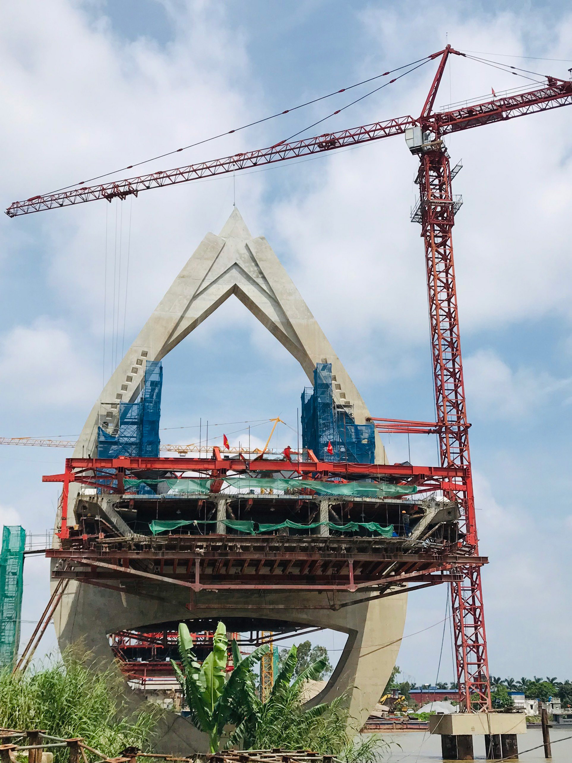 Trụ tháp P19 và P20 được thiết kế dạng chữ H bằng bê tông cốt thép và bê tông cốt thép dự ứng lực, trên móng cọc khoan nhồi với mỗi trụ gồm 24 cọc, đường kính 2m, chiều dài 80m. Hệ dây cáp văng gồm 112 dây bố trí trên 2 mặt phẳng, sử dụng loại tao song song (PSS) với 31 đến 55 tao cáp mỗi bó.