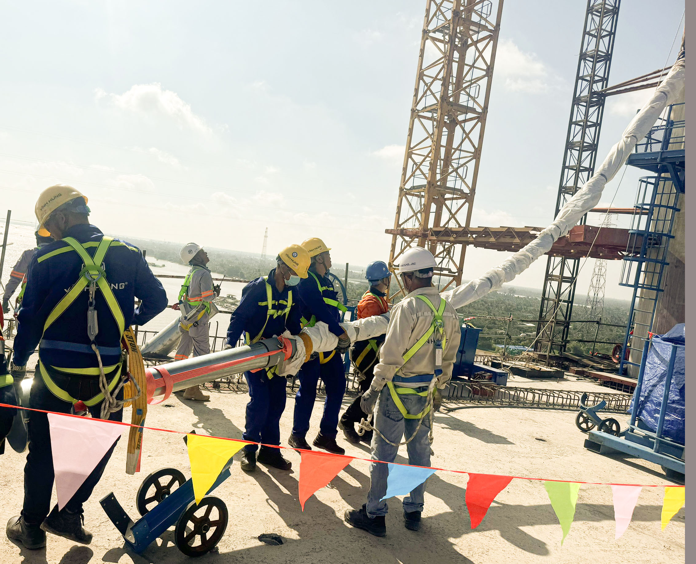 Theo kế hoạch, ngày 05/08/2024, Vĩnh Hưng sẽ tiếp tục căng bó cáp thứ 2 ở trụ tháp P19 (trụ chính còn lại).